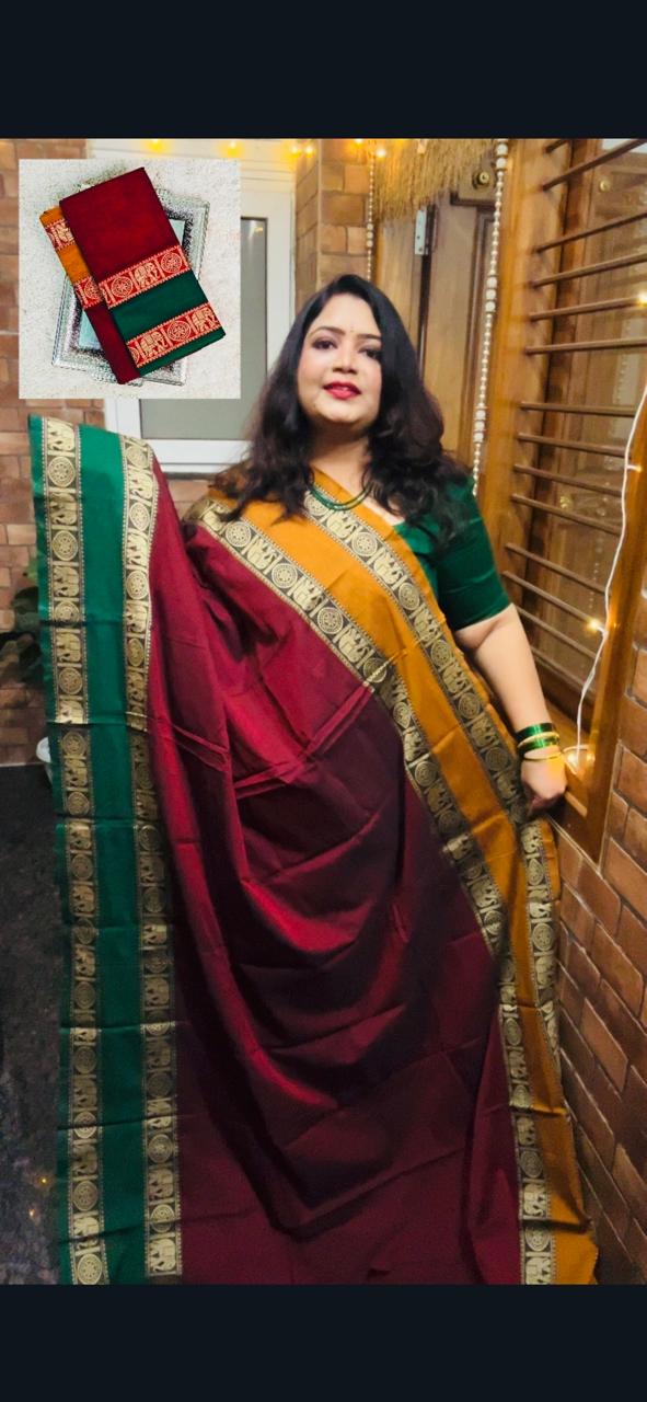 - Color: Vibrant traditional shades with Contrast Elegant Border